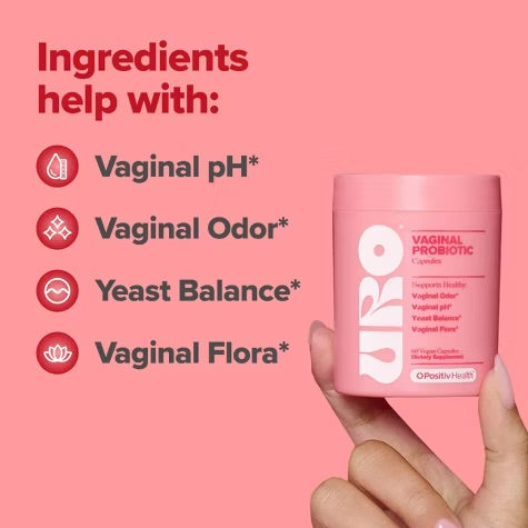 O Positiv URO Vaginal Probiotic es un probiótico vaginal recomendado por OB/GYN para el olor vaginal** Vegano, sin gluten, sin OGM y libre de crueldad.